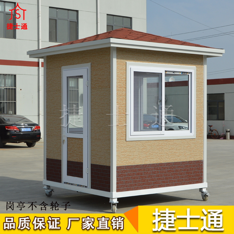 金属雕花板材质作保安岗亭是非常适合的,金属雕花板具有一定的保温隔热性能,板材也很厚,而且除此之外保安岗亭内部还添加防火层,更加具有保温隔热性能,但是有人就说了,是不是很结实呢?是的,很结实,他中间还有一层密度很高的方钢龙骨焊接,具有抗压抗震性能,简直就是保安岗亭的一个飞跃,岗亭内部设备齐全,保安只要拿着凳子就去,就可以办公了哦,而且还可以安装空调,现在的保安在某种情况下,也是很幸福的一个职业呢!