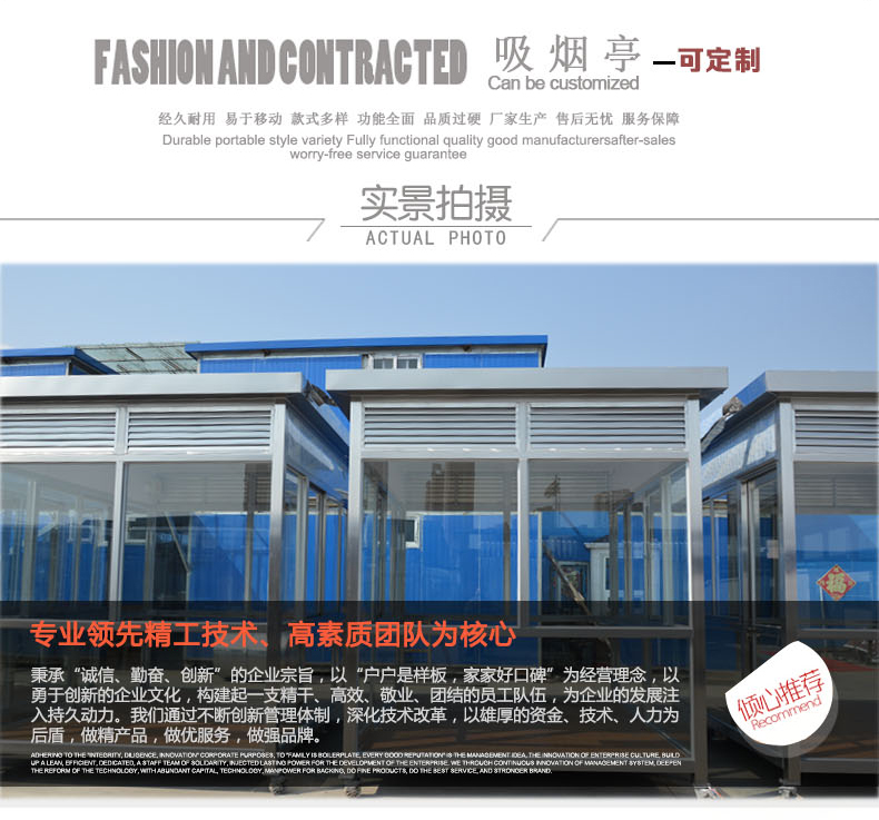 天津万彩网与河北地区有着长期的合作,销售吸烟亭、保安岗亭、治安岗亭、售货亭、小型移动房屋等等。