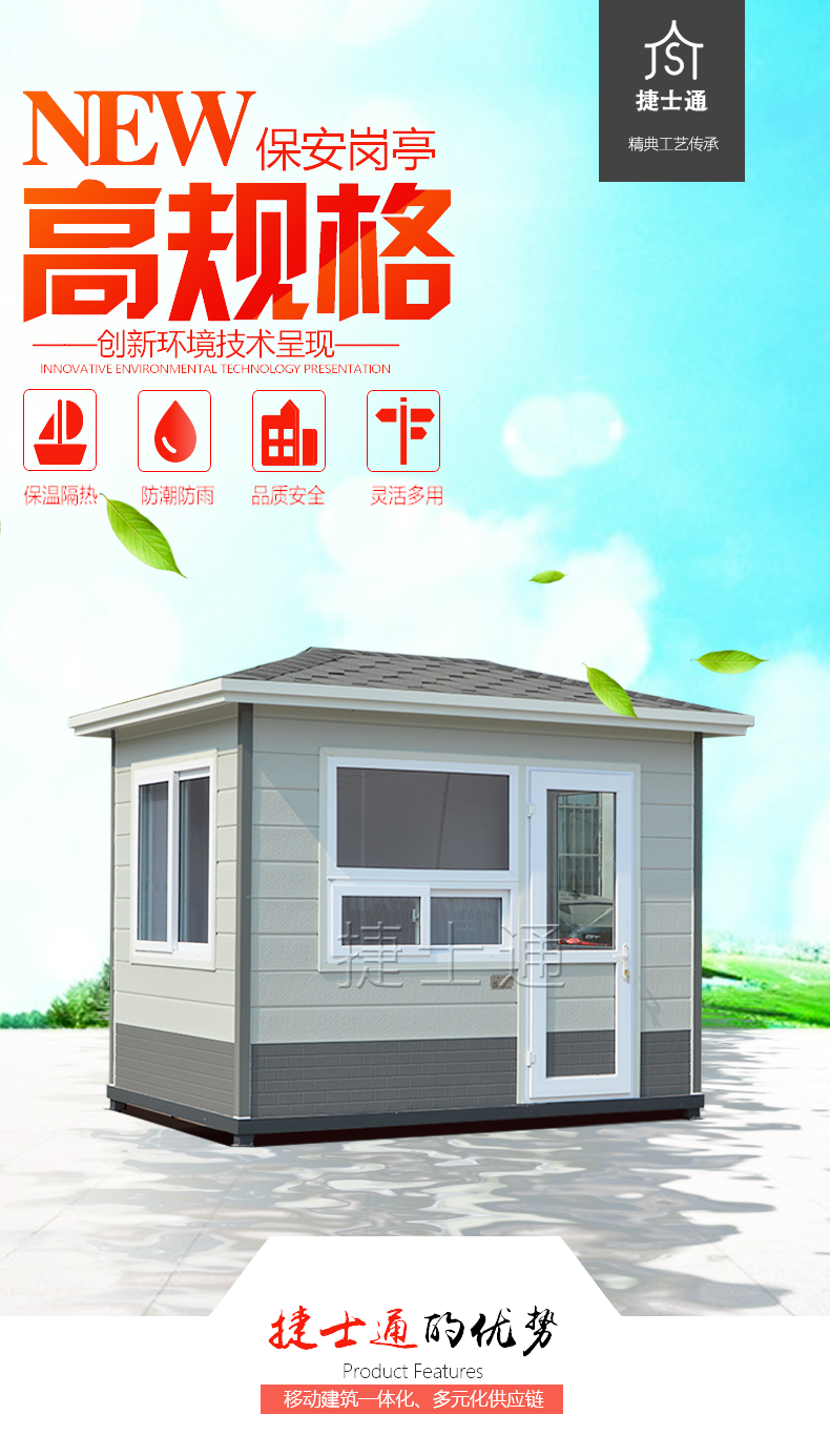 万彩网保安岗亭特性符合夏季,保温隔热 ,冬暖夏凉,可塑性可定制可批量,工期短!