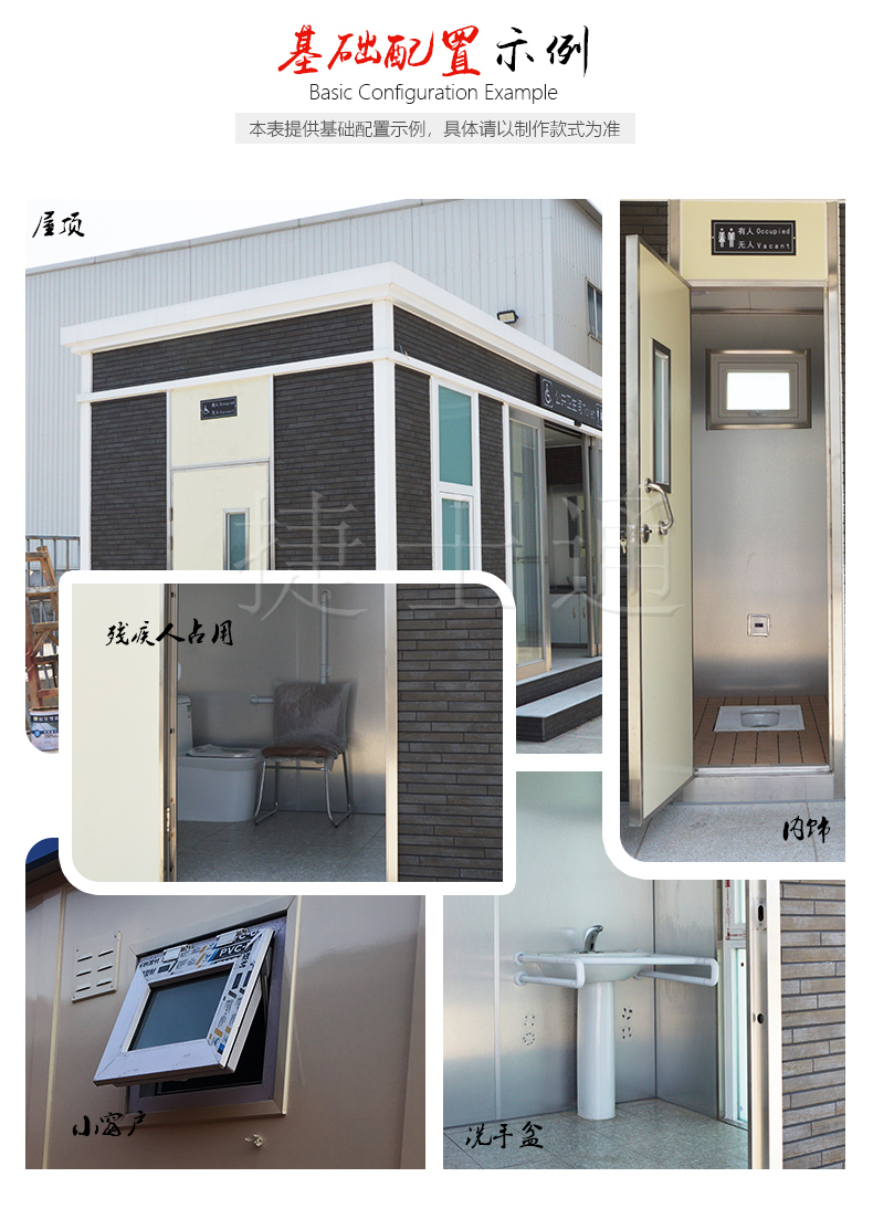 内部配置:屋顶镀锌板静电喷涂,杜绝漏雨、照明灯、漏电保护器、室内PVC吊顶、