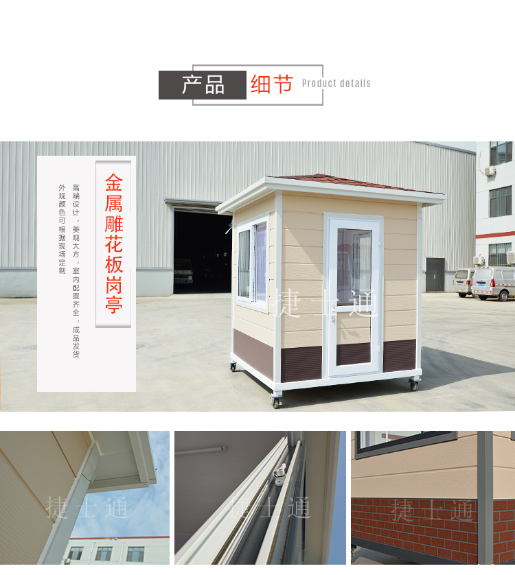 内饰:室内顶部为铝合金扣板,地板为防滑花纹铝板;材质:金属雕花板板保安岗亭 公司网址:elpoderdeelectro.com