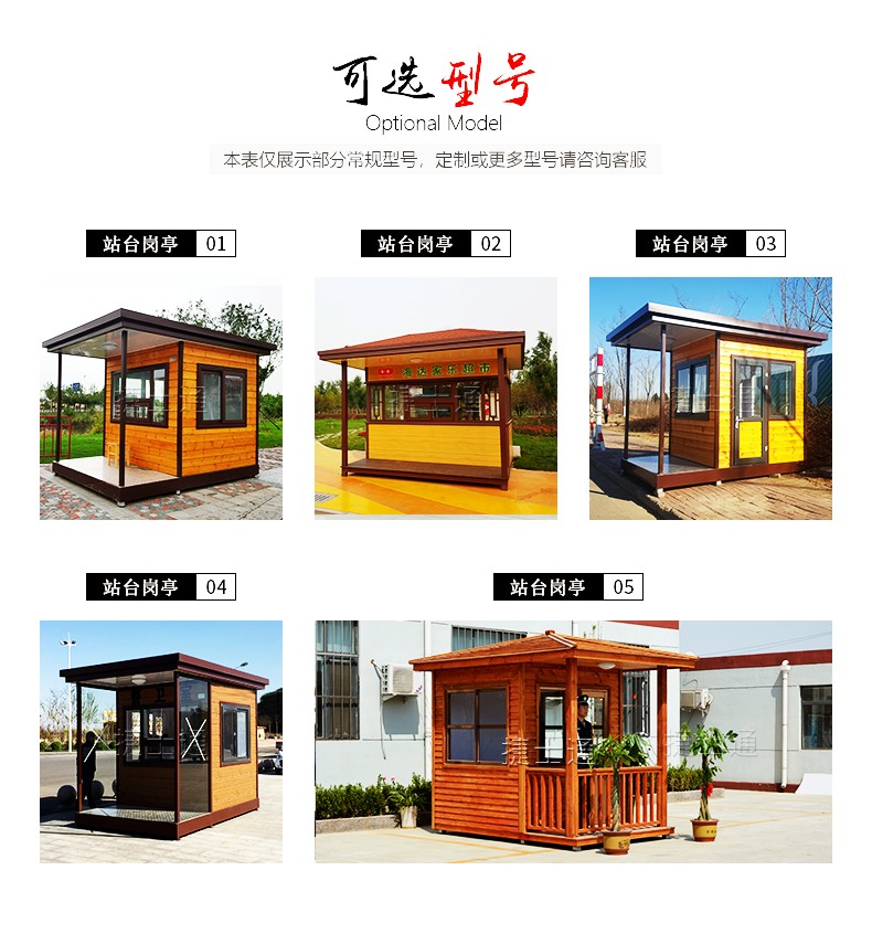 钢结构木质岗亭特点:钢结构木质岗亭无需再次装修,材料环保;量身定做,一体成型,无需二次组装;防潮、防虫、防腐、防火、抗震,调节湿度、温度,冬暖夏凉