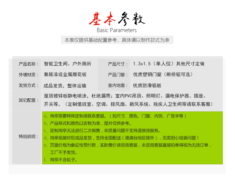环保移动厕所,外型美观大方,内部配置齐全;主要配置:衣帽钩、化妆镜、手纸盒、垃圾桶、有无人指示系统、求助系统、自动保温系统、照明灯、大理石地面、厕间门要求坚固,门锁钥匙统一,方便使用。整体钢结构,整个卫生间的承重结构、选材和焊接符合国家标准,经防腐处理,吊装移动时,保证产品牢固性,不变形。联系电话:15822882616 公司网址:elpoderdeelectro.com