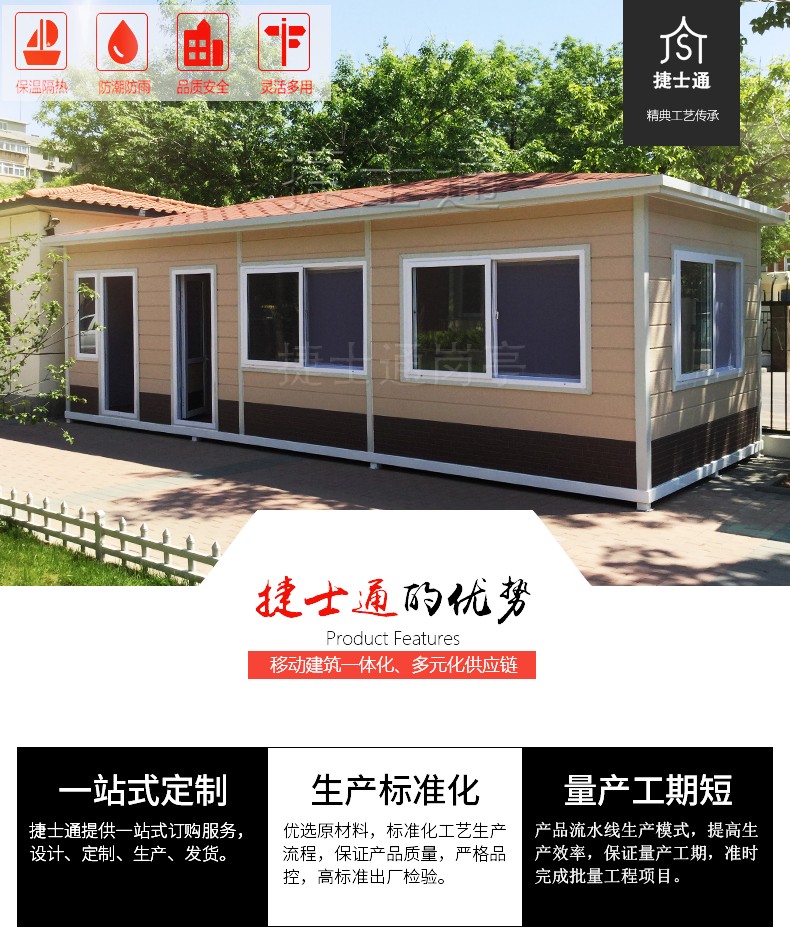 金属雕花板移动办公室:1. 岗亭支撑柱采用优质钢型材焊接制作,美观、坚固、耐用