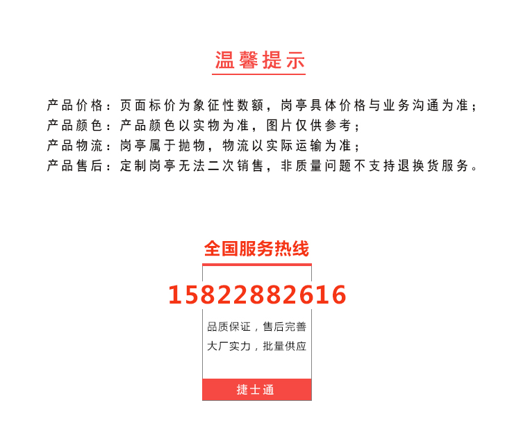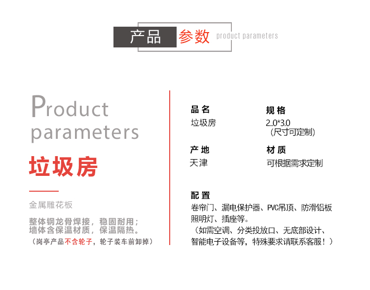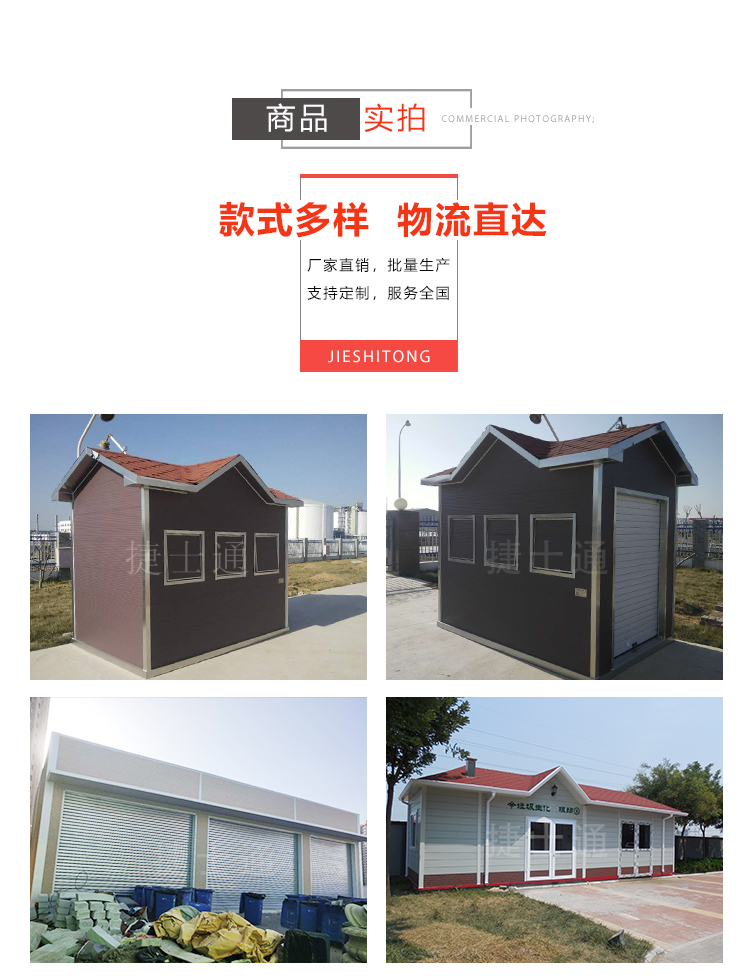天津万彩网岗亭是制造岗亭、垃圾房的生产厂家,产品从工厂直接到终端客户,省去中间环节,让客户利益大化,所有垃圾房产品只收取生产成本及加工费用。我们推荐的环保垃圾房不仅是物美价廉,也是货真价实,一分钱一分货,款式多样,只有您想不到的,没有我们做不出的!如有需要,请拨打我们的免费热线:15822882616 ,24小时随时在线!垃圾房价格的决定因素:样式+大小+用材 。公司具有雄厚的技术力量与经济基础,以及完善的经营管理体制。我们为改善城市环境,美化我们的生活做着不懈的努力。 垃圾房产品优势:垃圾房的样式大小用材,都可以根据客户的要求来进行量身定制,致力打造称心的环保垃圾房。
